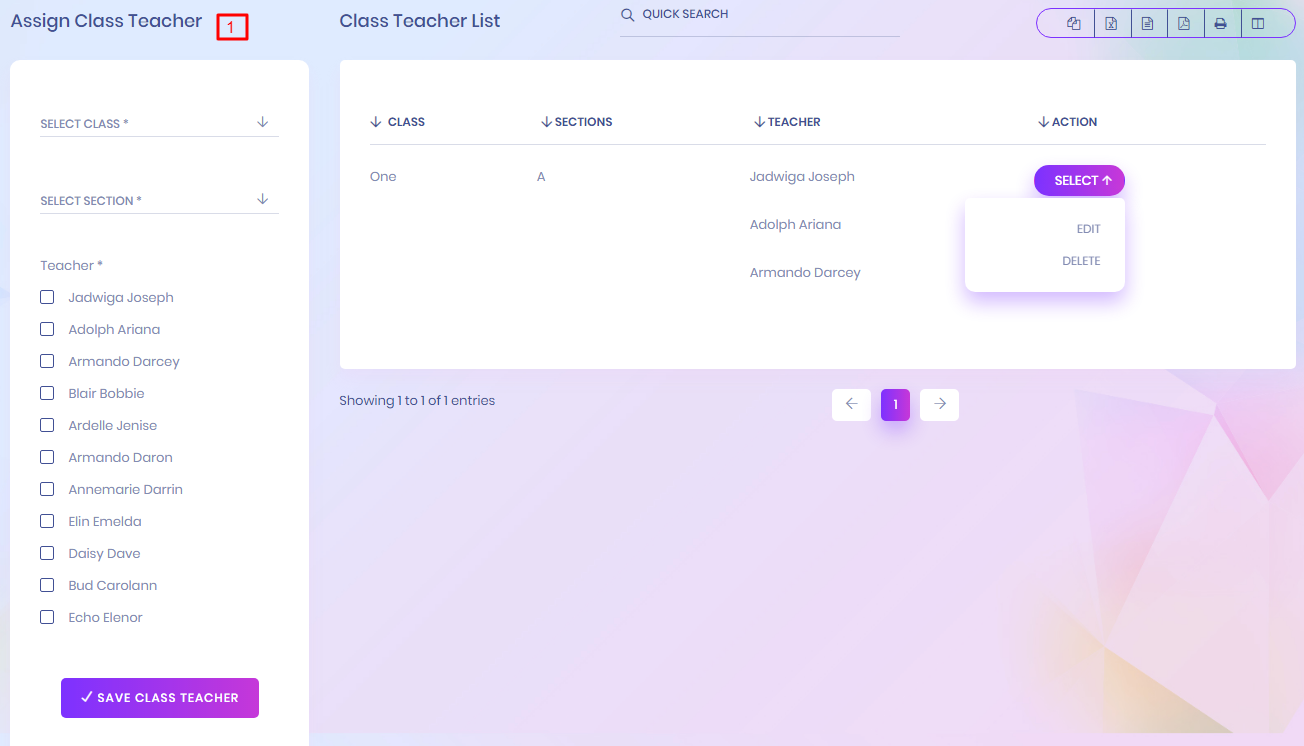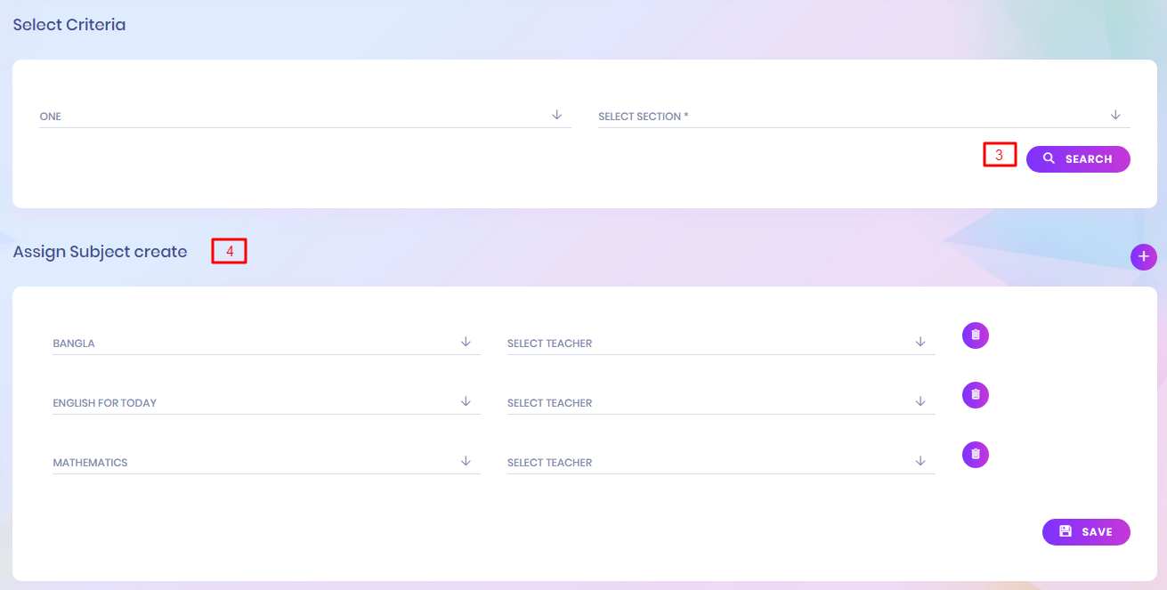To set assign subject, you have to select subject, teacher, and room number. Please see how to add subject , teacher.