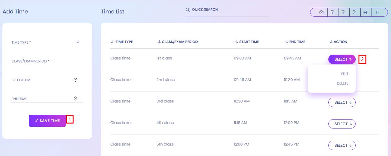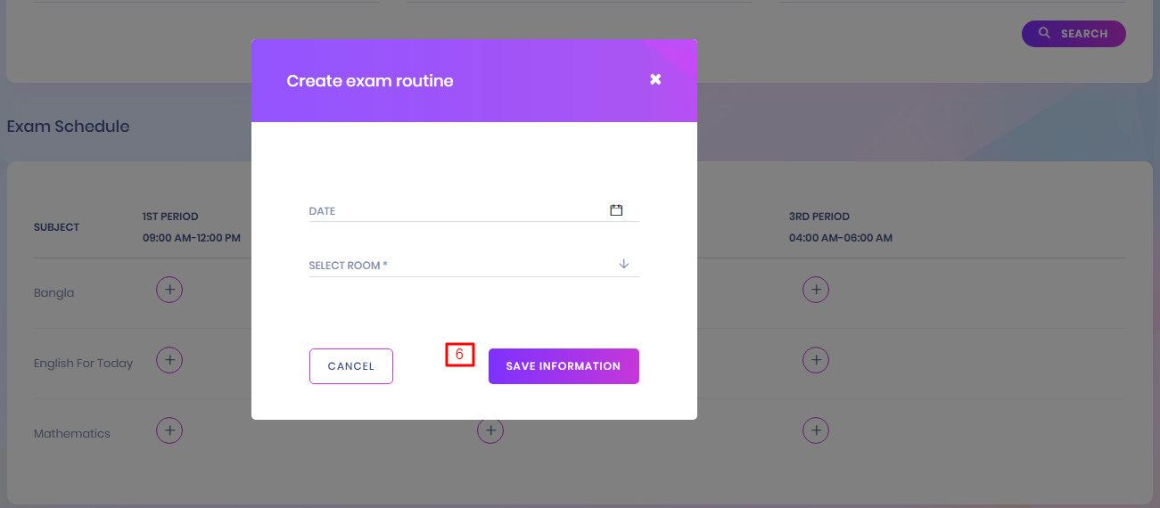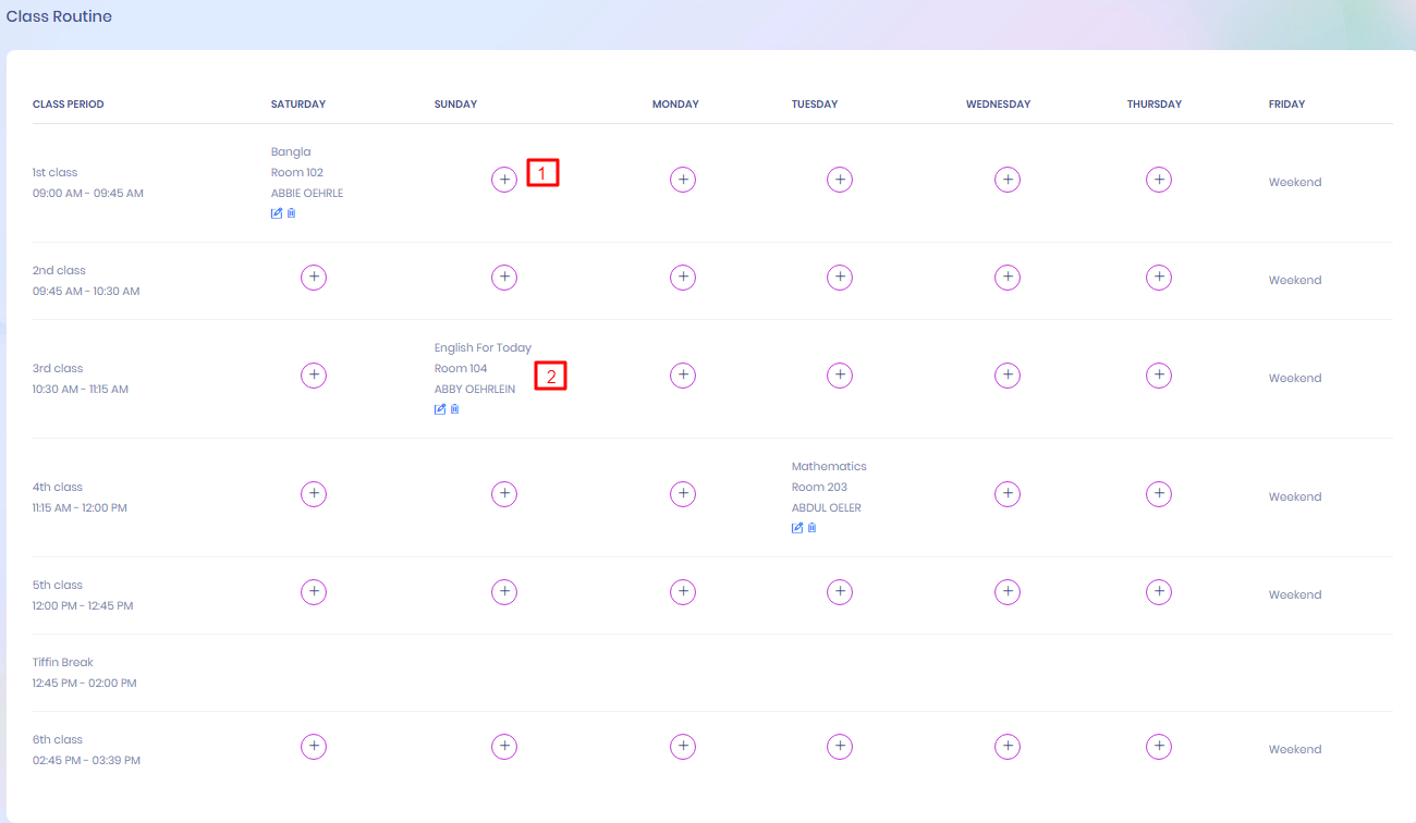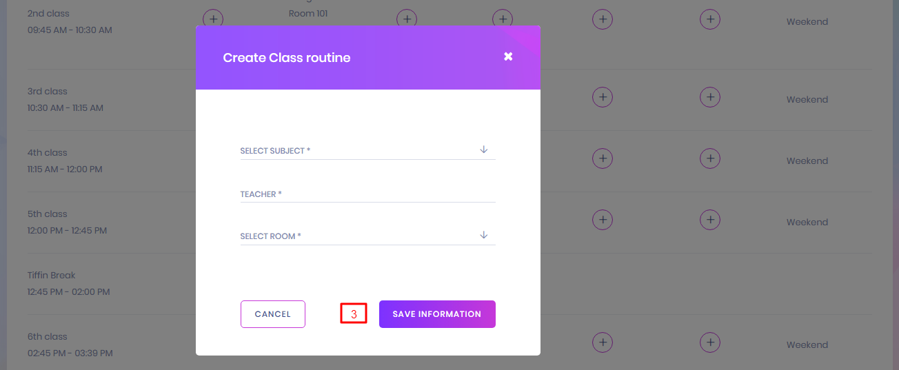 To set class routine, you have to select subject, teacher, and room number. Please see how to add subject , teacher , and room number