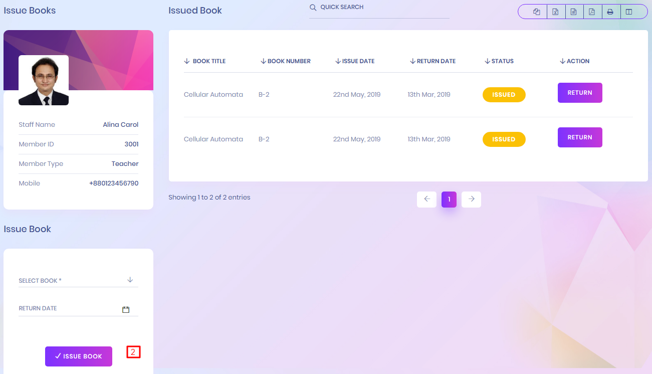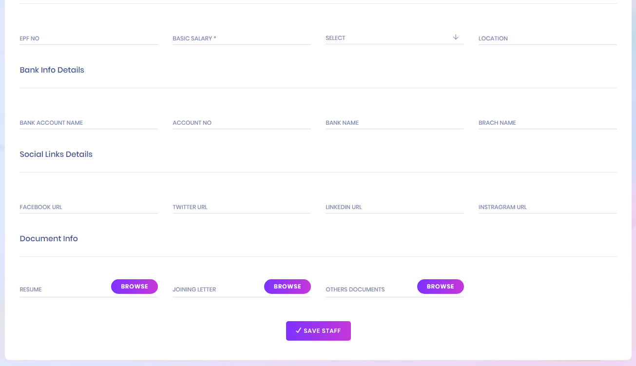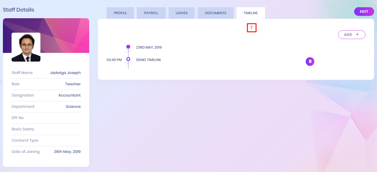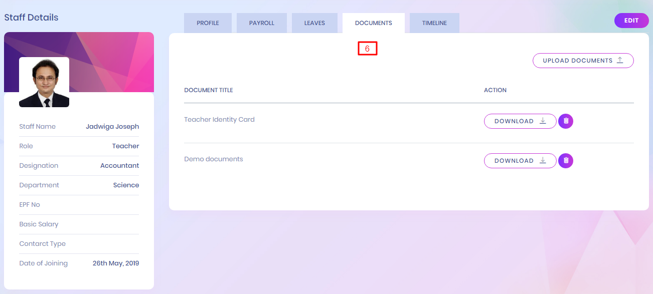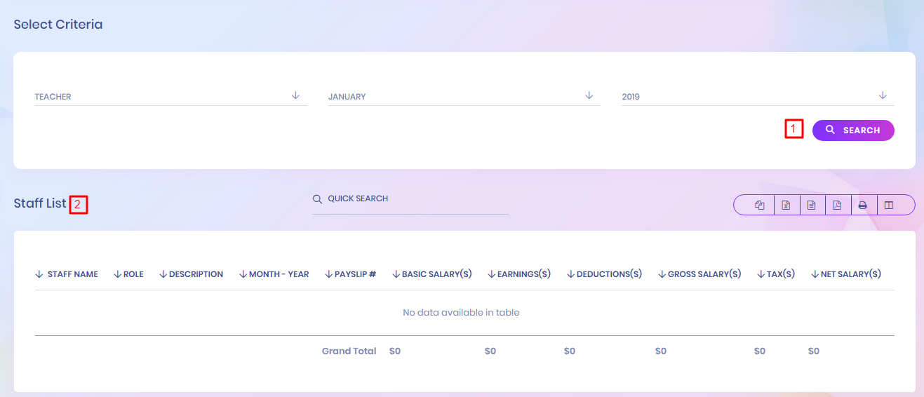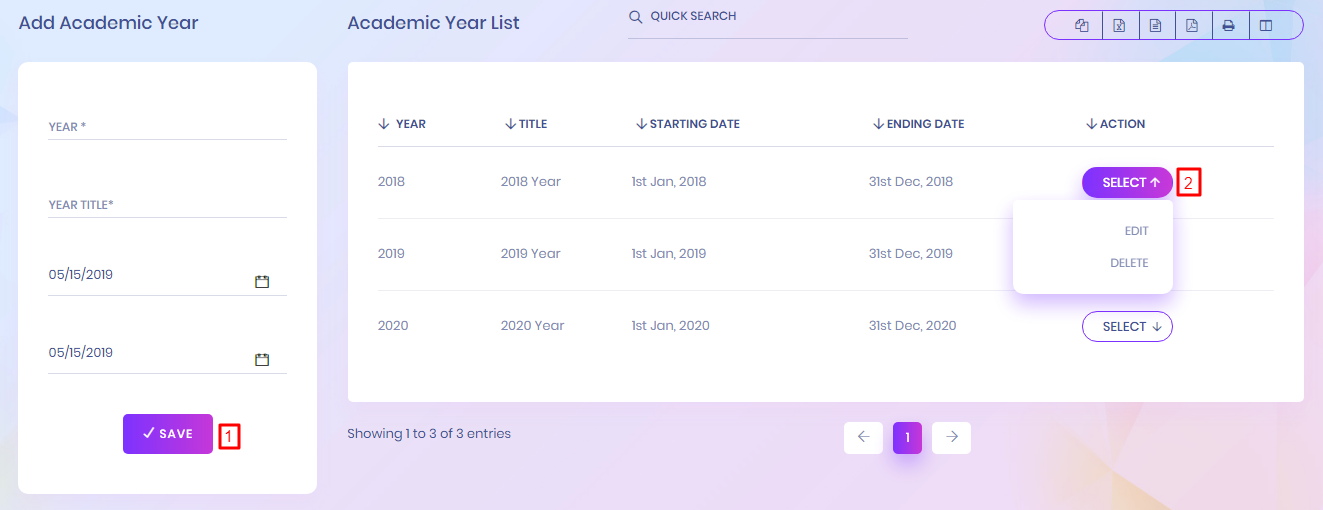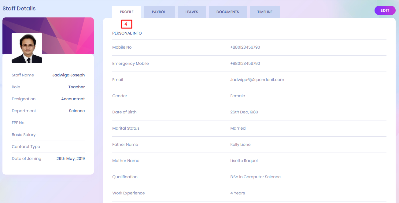 At the top menu of left sidebar is Dashboard. There are several view port in dashboard. we can see the number of students, teachers and staff etc. at a glance. Summary of the Income and Expenses is very important for ERP system. After login a user can see the update for that day.
