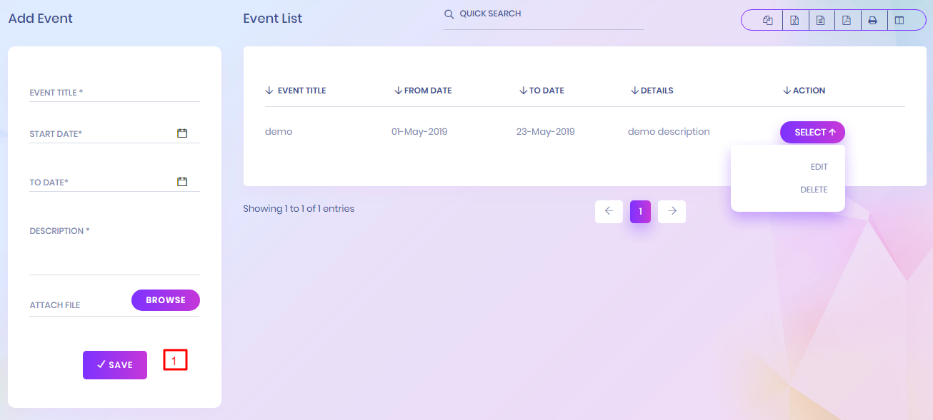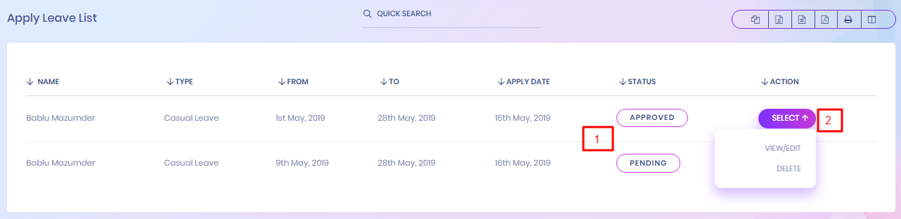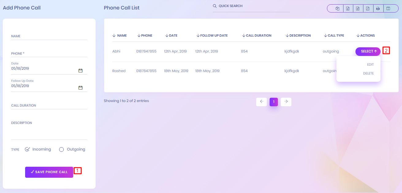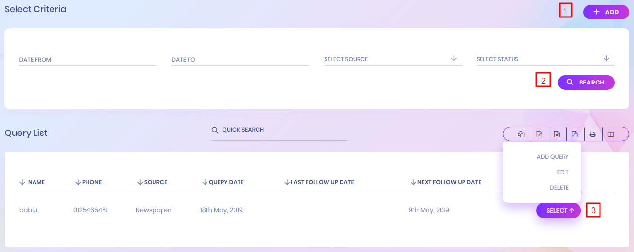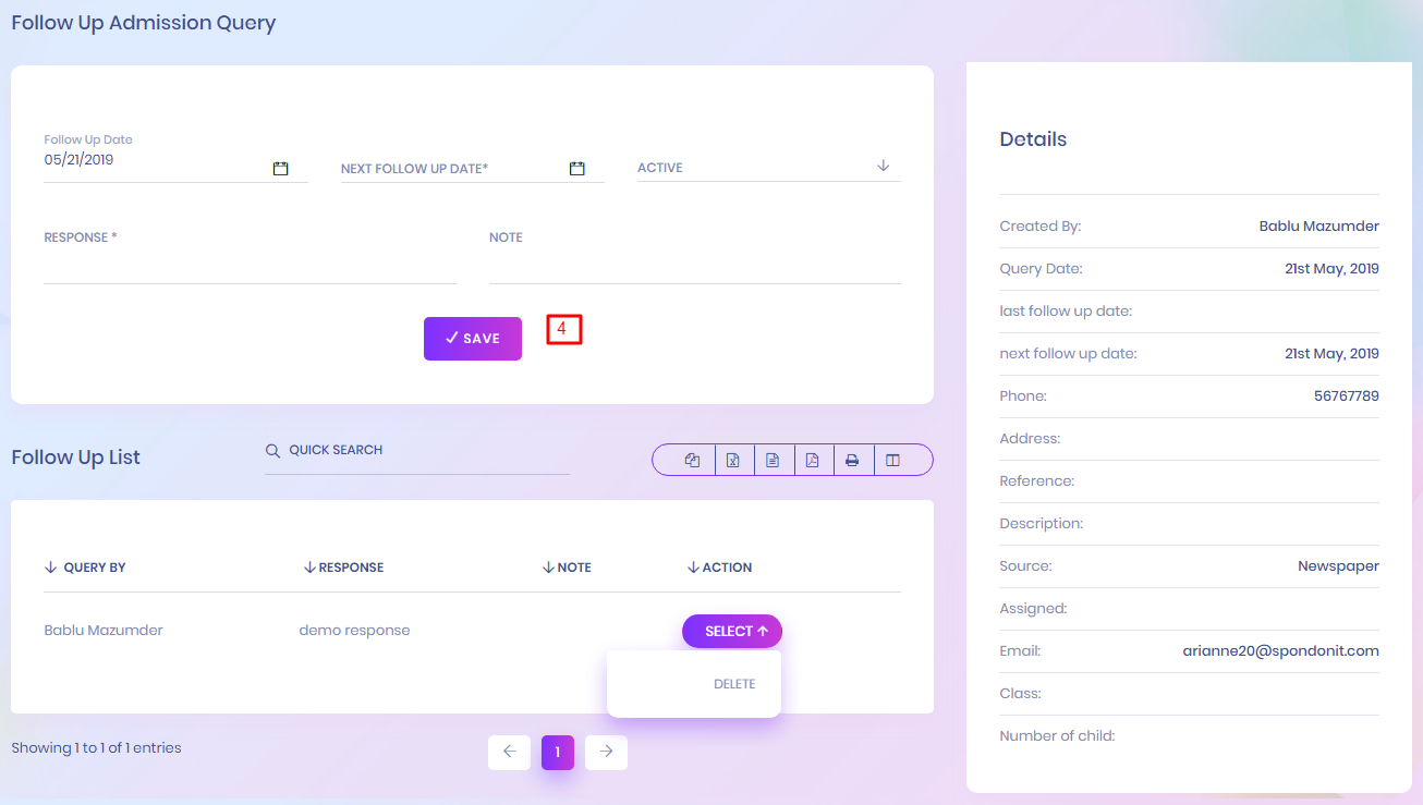 In the actions option,if super admin wants, he can add next follow up query,edit and delete of a particular query.