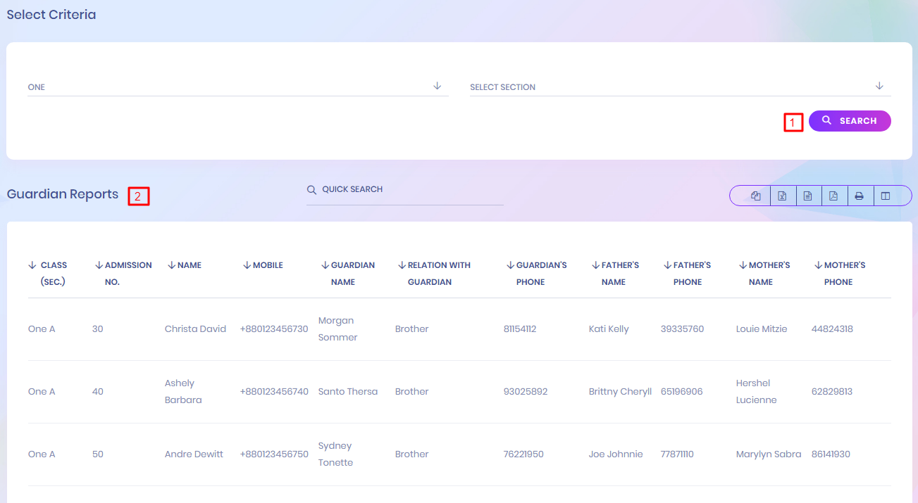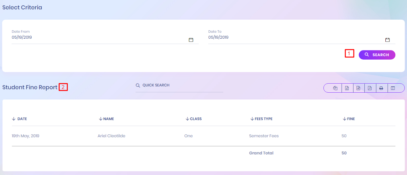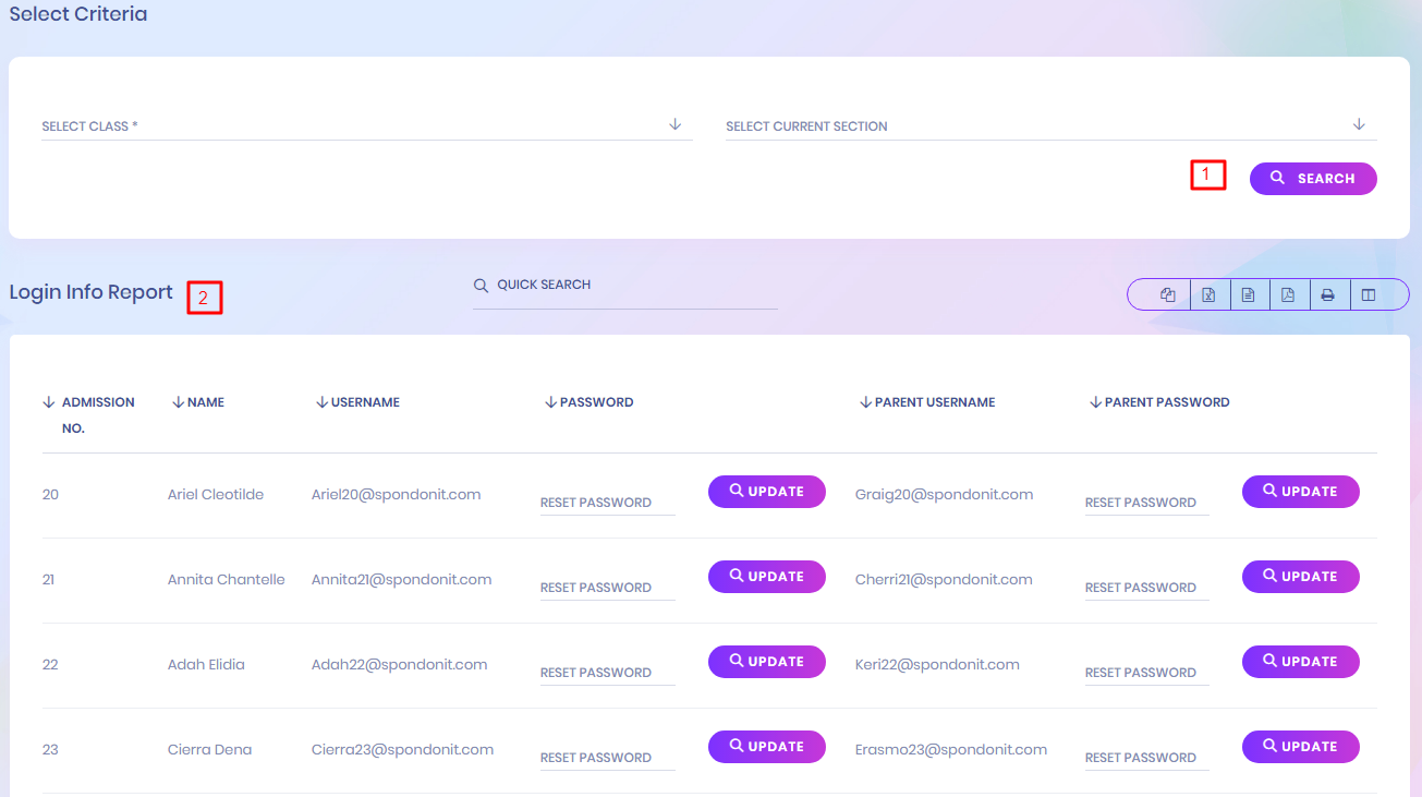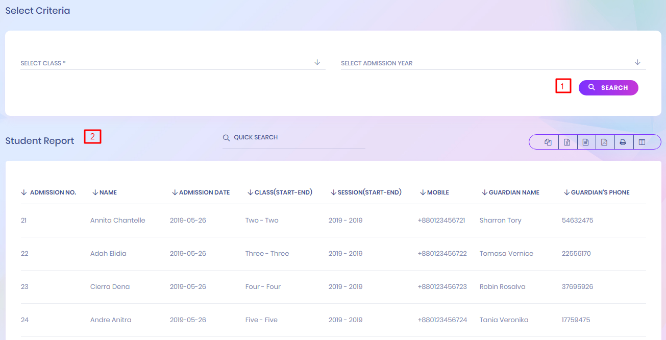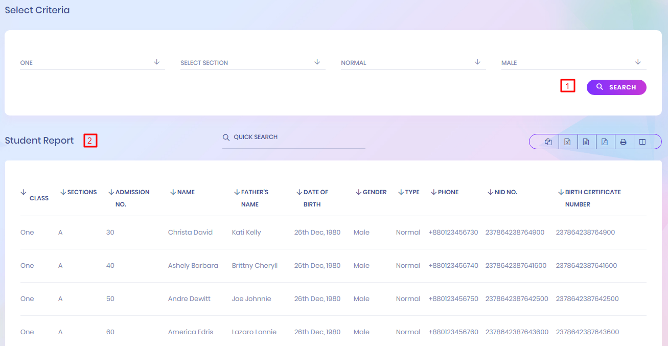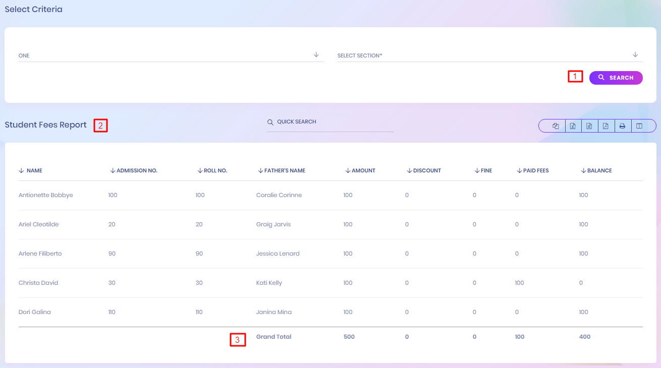 Reports section is very important in this School Management ERP. You can go to report section from all over the system.