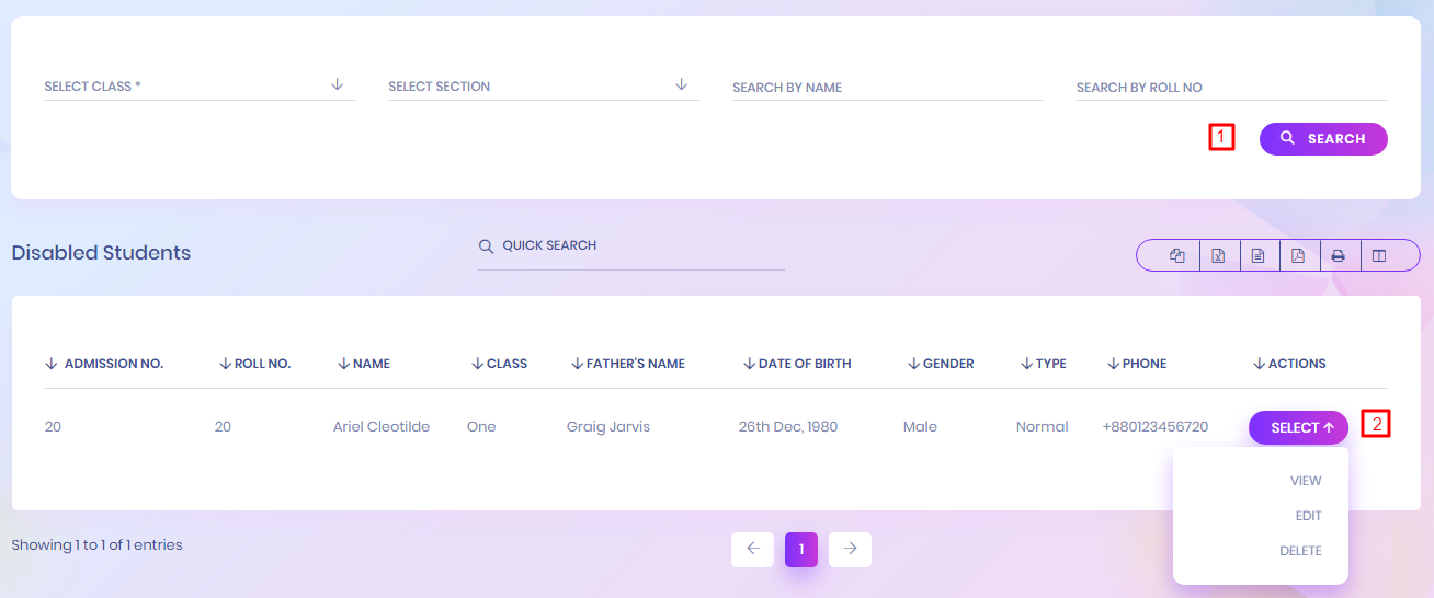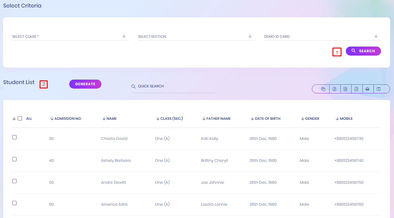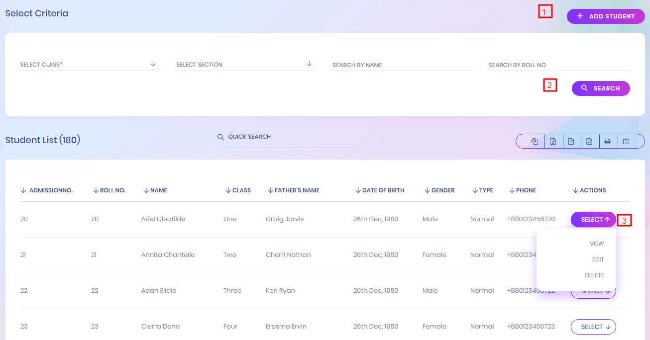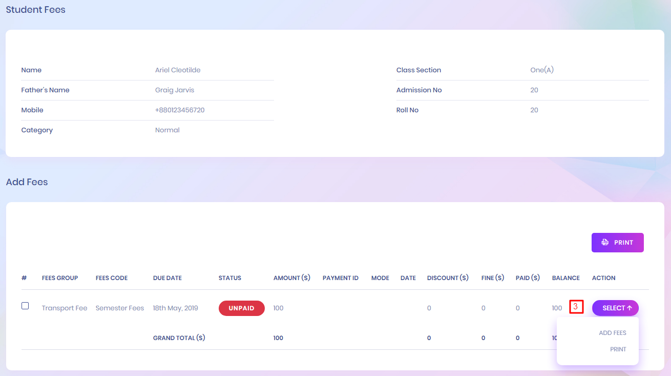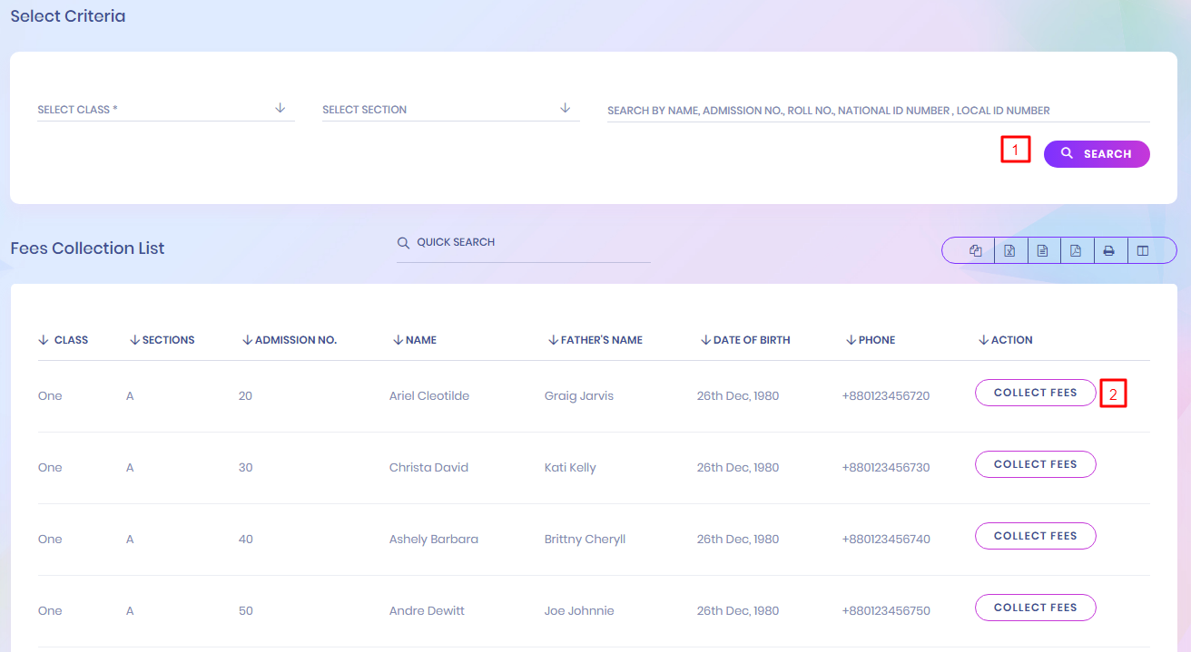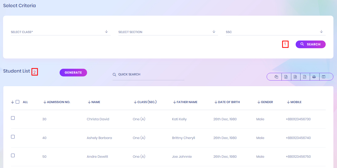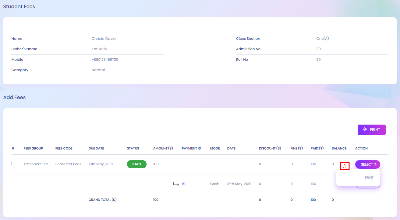 Reports section is very important in this School Management ERP. You can go to report section from all over the system.