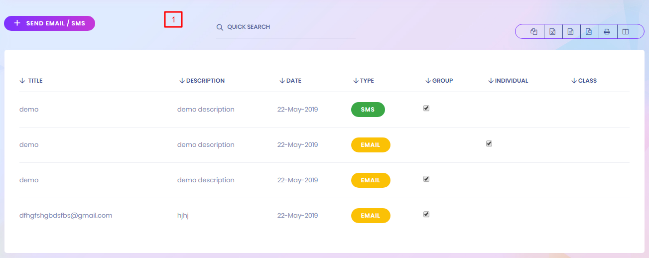 If Administrators or Teachers set any task for student, then it will automaticaly send notifications to Teachers, Students (All students or specify class's students) and parents also you can track sent messages .