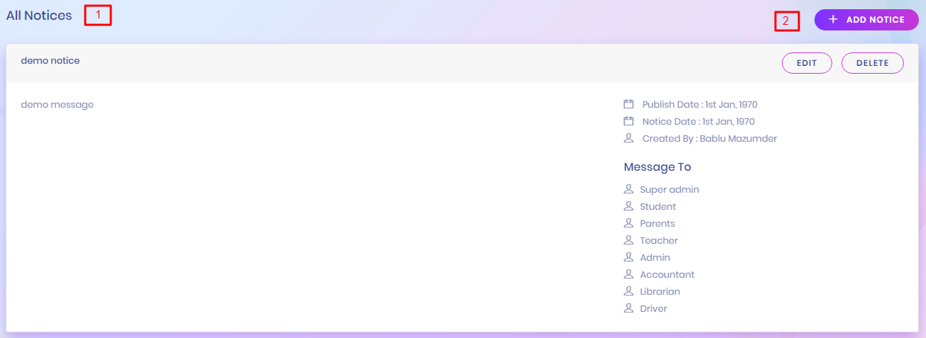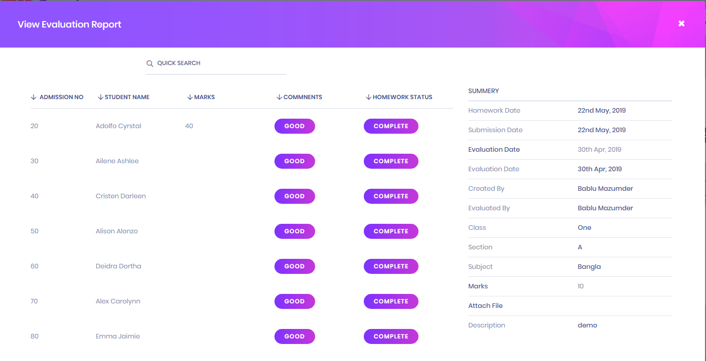 Administrator/Teachers can add homework for their students. After adding homework, students will get notification of their system panel.