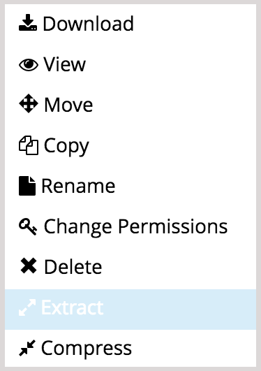 After upload is completed, Right click on the package and select Extract. That will extract the zipped file contents