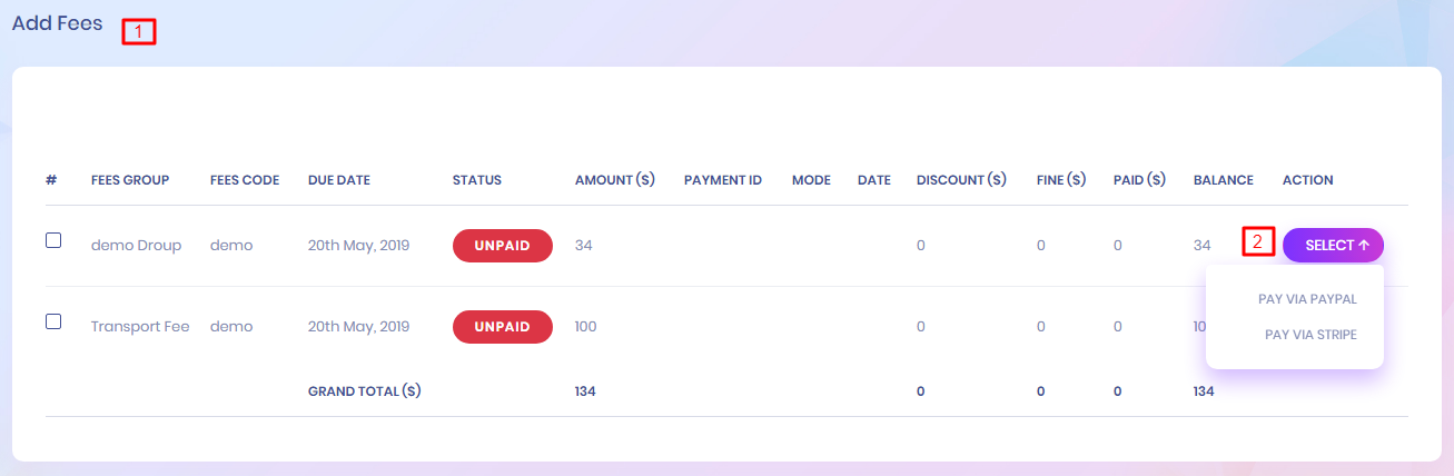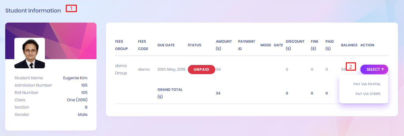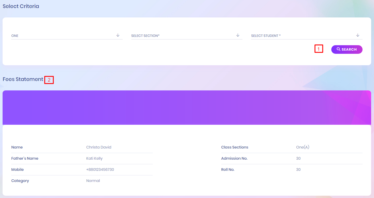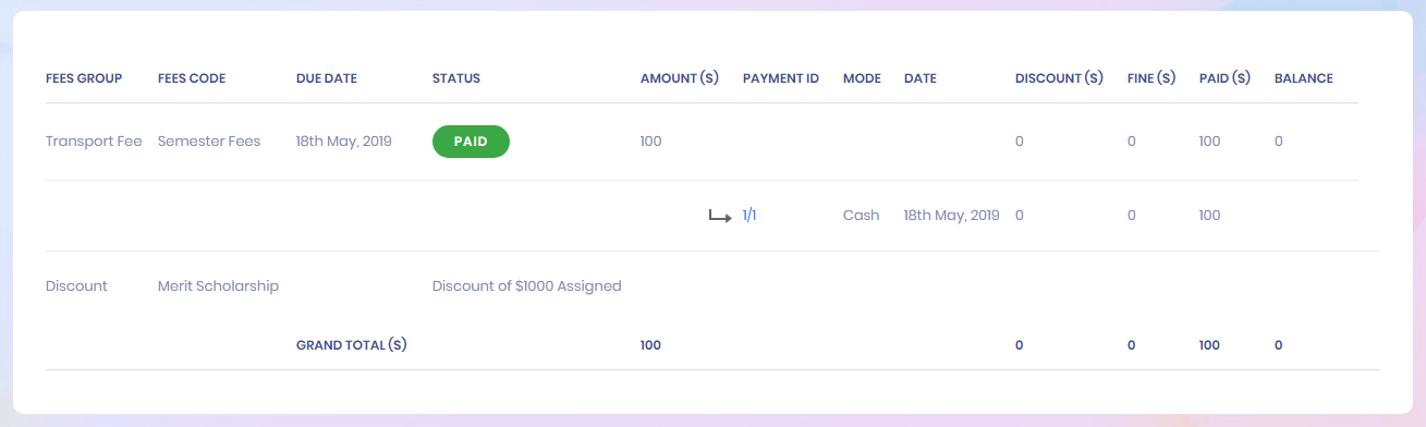 Parent Can See the particular student's fees statement,fees status which is paid or not.