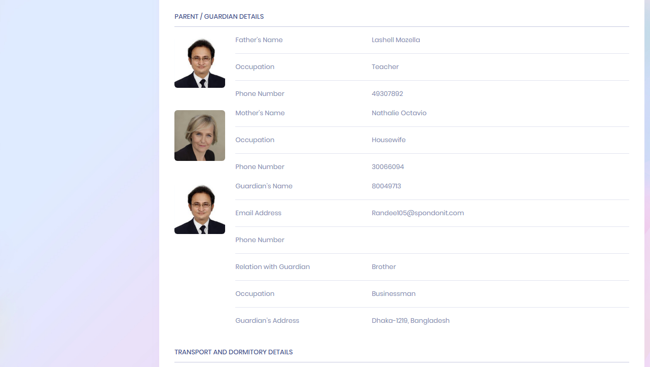 - Guardian Email: It is required because their login in this system to check their child's progress or lacking