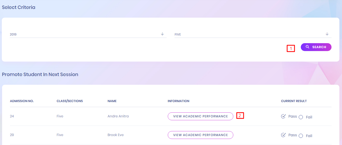 Admission query can be searched through certain date to date, information source and which are active or not.